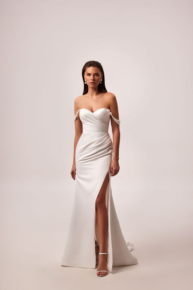 This gown was designed at a standard length to account for the different heights and shoe choices of each bride. The hem can be easily altered for the perfect fit.