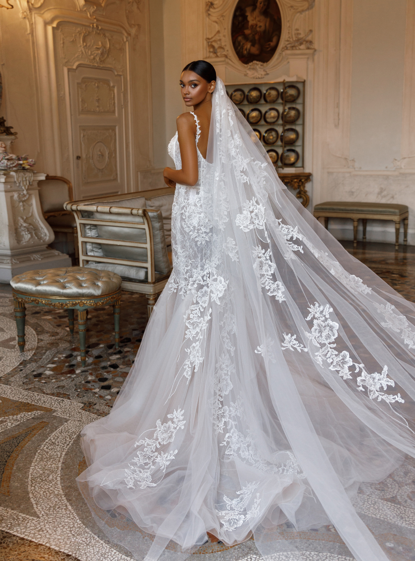 This gown was designed at a standard length to account for the different heights and shoe choices of each bride. The hem can be easily altered for the perfect fit.