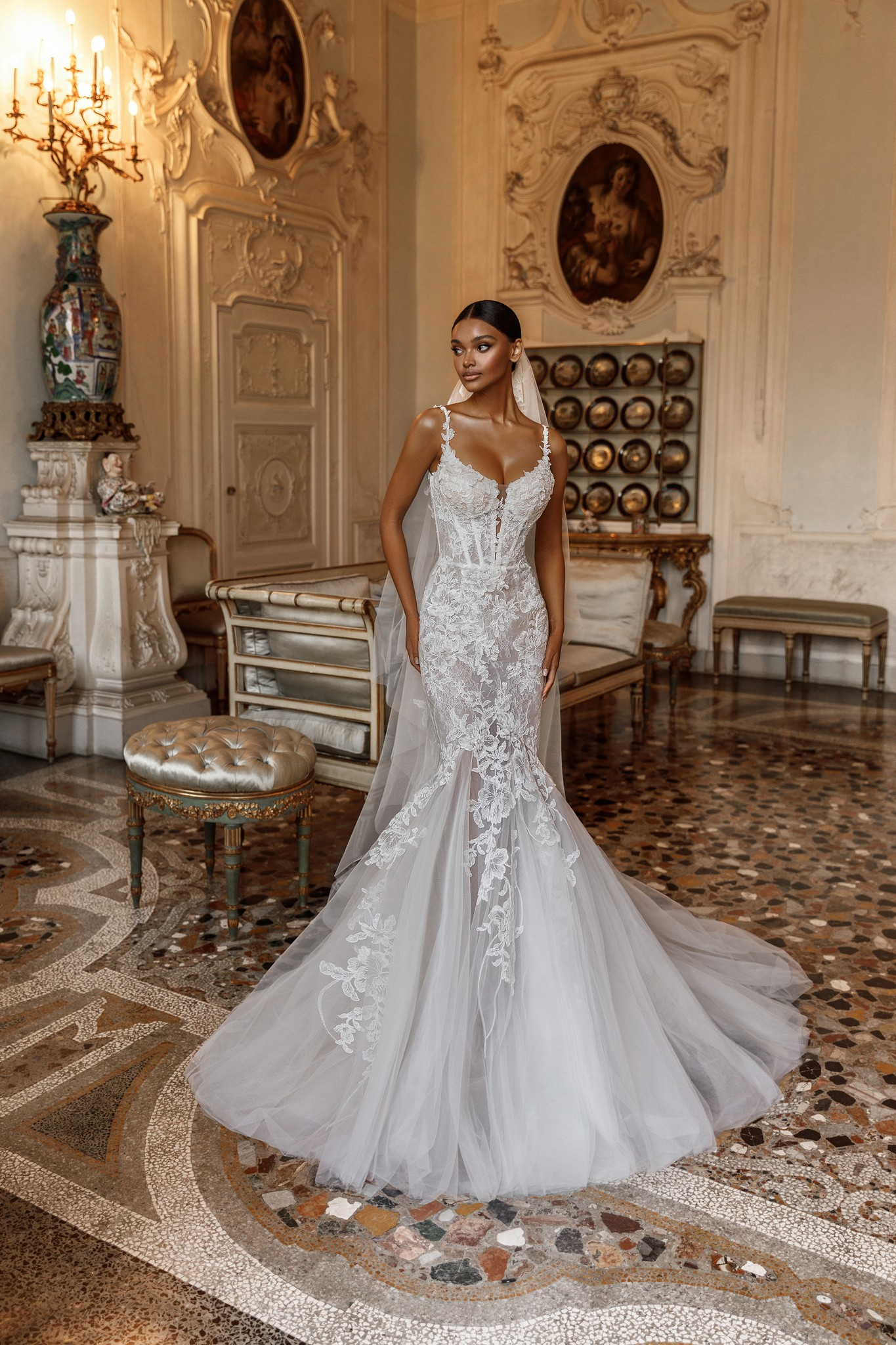 Production times are an estimated 4-6 months from the time of order. Rush production may be available upon request on select gowns, with some gowns being produced in 3-4 months.