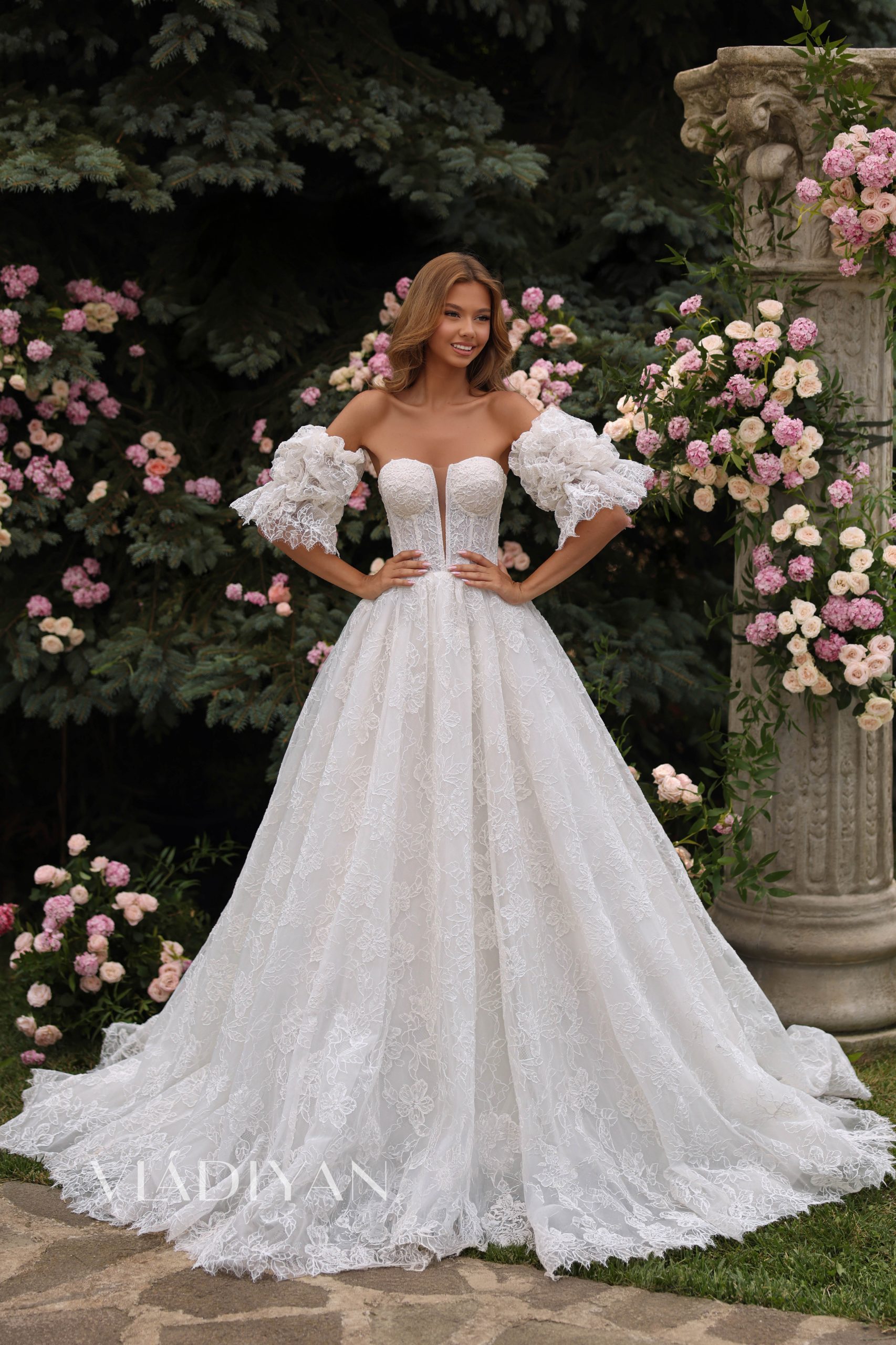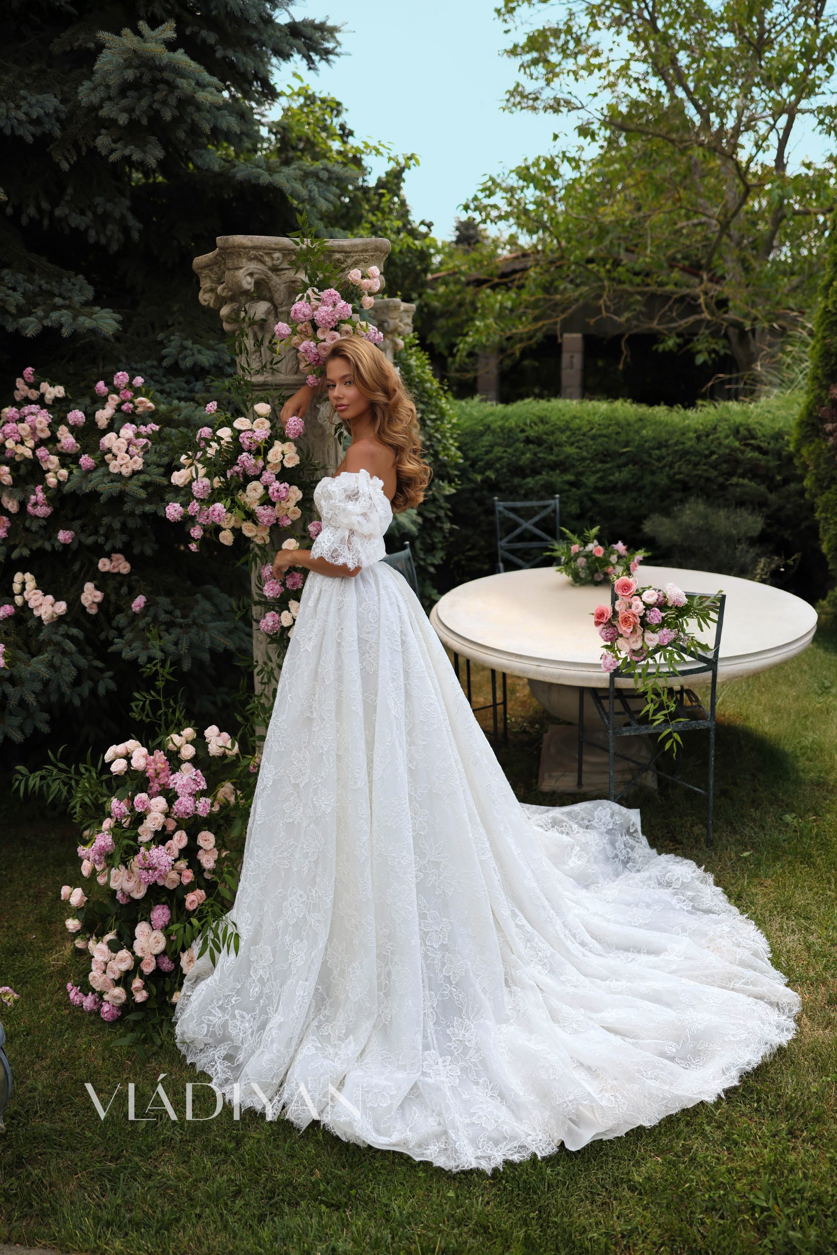 Production times are an estimated 6-8 months from the time of order. Rush production may be available upon request on select gowns, with some gowns being produced in 4-6 months or less.