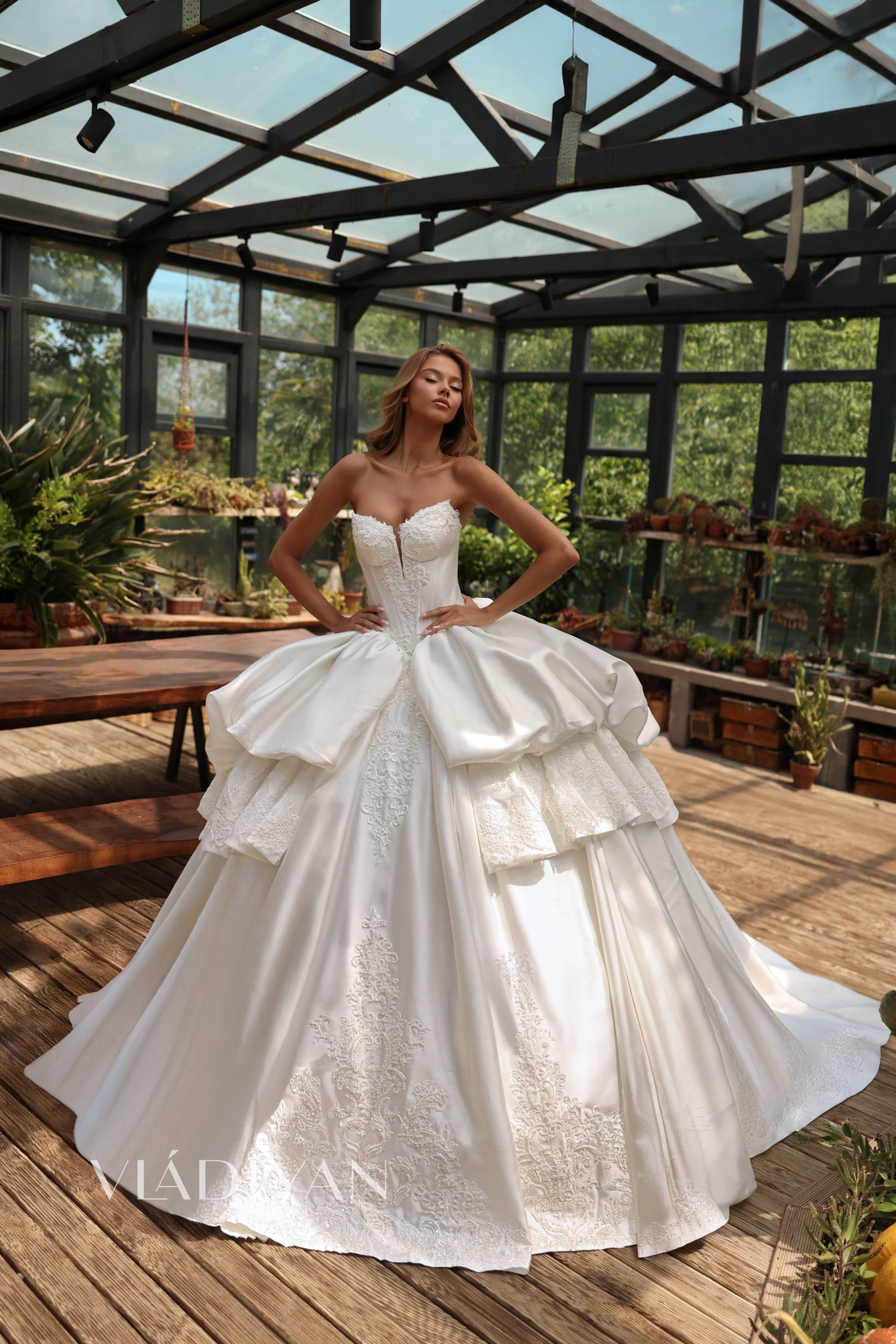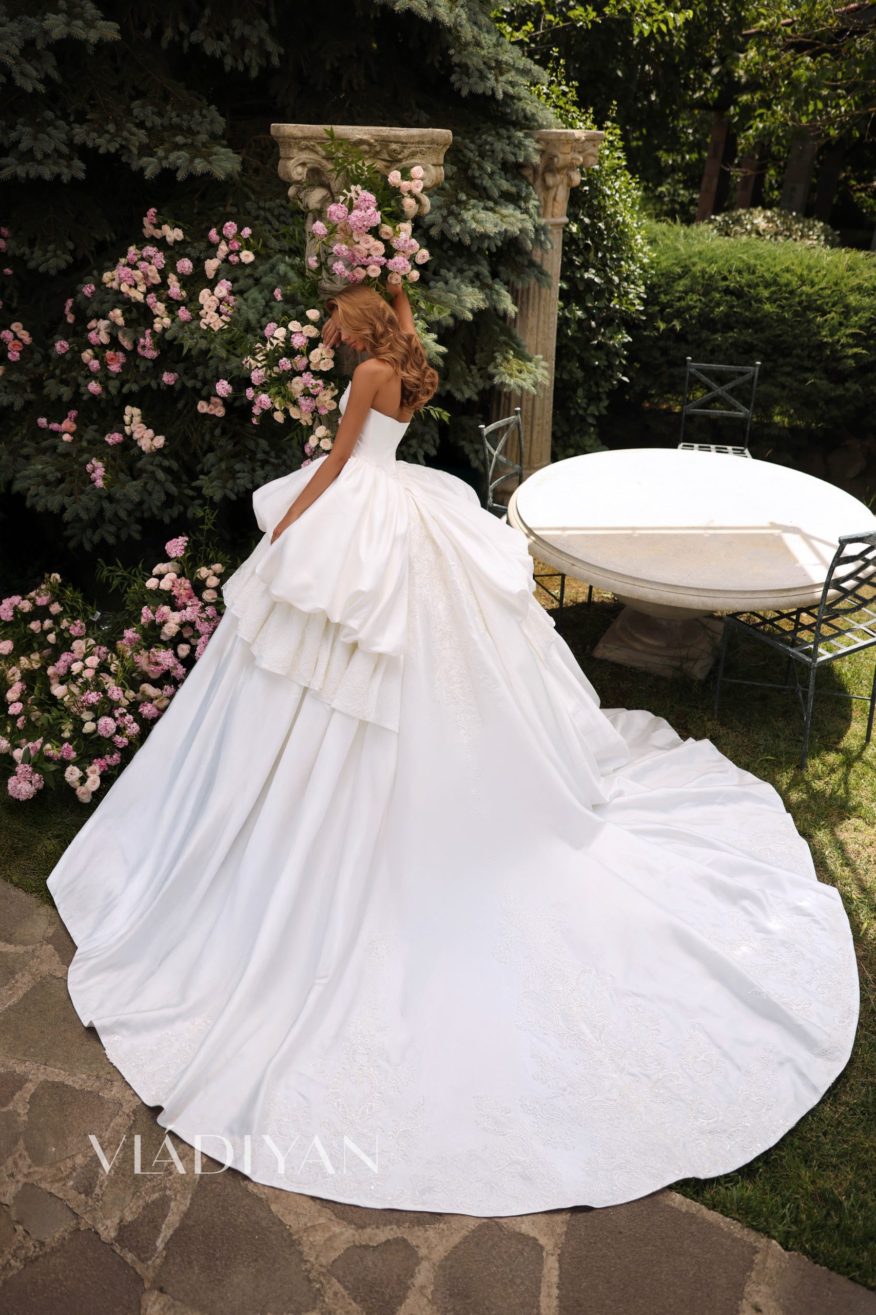 Production times are an estimated 6-8 months from the time of order. Rush production may be available upon request on select gowns, with some gowns being produced in 4-6 months or less.